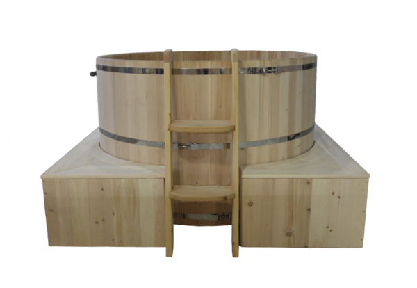 Короб по кругу поможет лаконично вписаться купели или фурако в любое пространство, сделает безопасным подъём и спуск в воду, а так же будет служить: полкой, столиком, сиденьем или чем-то еще. Варианты короба могут быть такими, какими вы захотите.