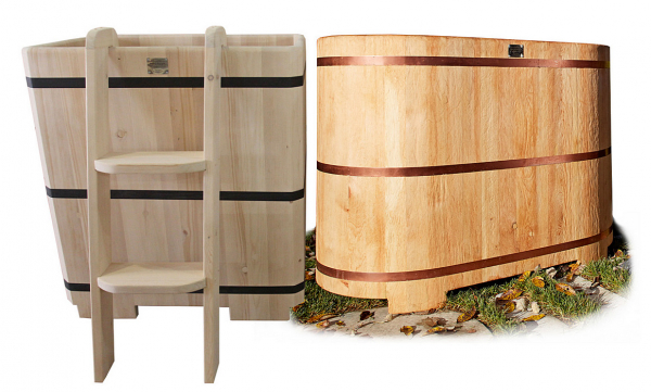 Выбирайте купель с учетом ваших возможностей и пожеланий: полностью из кедра, с пластиковой или композитной вставкой.